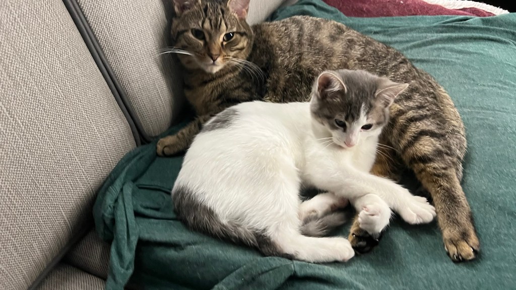 In January, we staying in Crystal River Florida. Camryn and Conor came for a visit and we swam with manatees and pet penguins at the zoo. We also got a friend for Gander, another kitten we named Sunny. They were instant best buds.