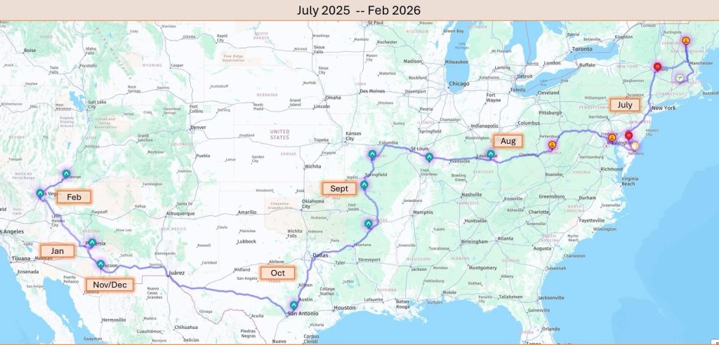 Below is the map of our year to come. If you want to meet up on our travels, let us know. Thank you for following along on our adventure. I’ll try to do better this time.