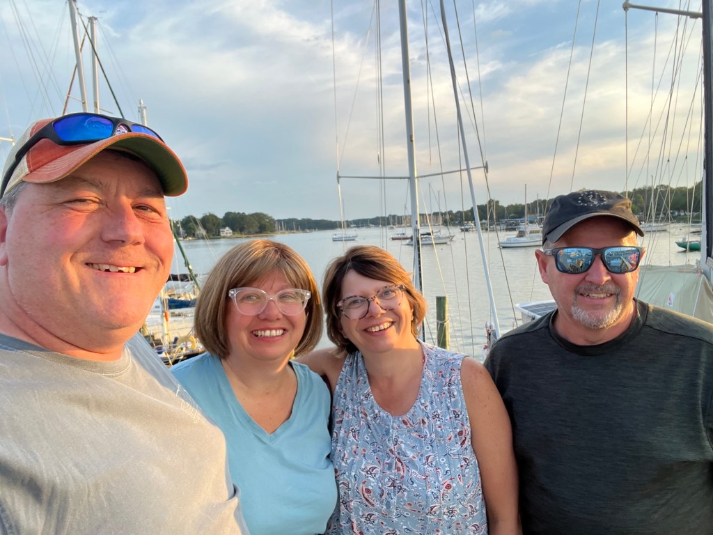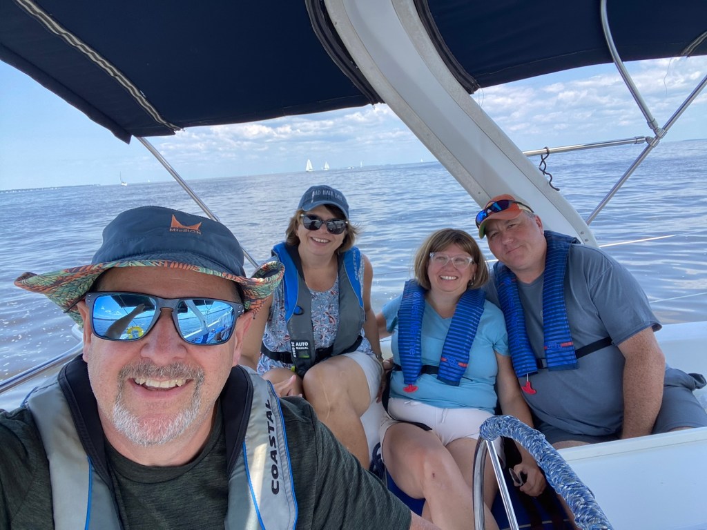On Sunday, my sister and her husband took us sailing. Jay and I work really well together but I don’t know if captain and first mate are in the cards for us. That’s a lot of work! Kudos to Carolyn and Mark for their teamwork. It was a beautiful day out on the water followed by a terrific meal in the harbor. A great way to spend our last weekend on the east coast (for a while anyway).