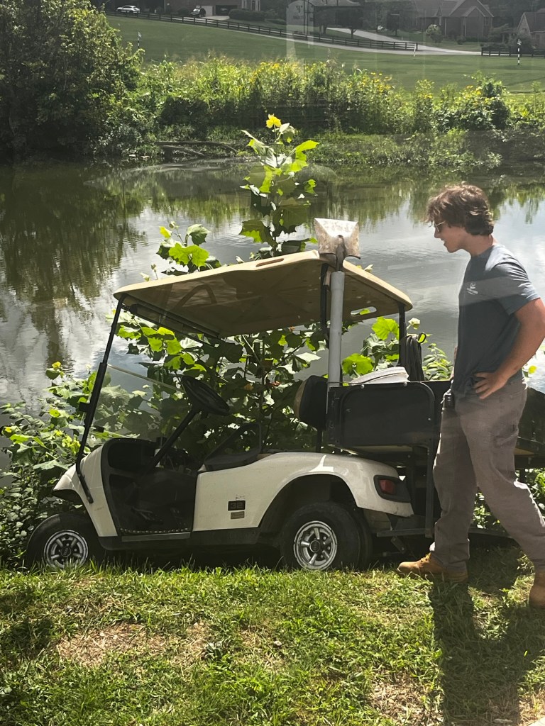 This young kid works here. And apparently part of his job is chasing the geese. 🤷♀️ He got a little too close I guess and nearly went for a swim. It took him, Jay, 2 other guys and a backhoe to get it out. It was really entertaining.
