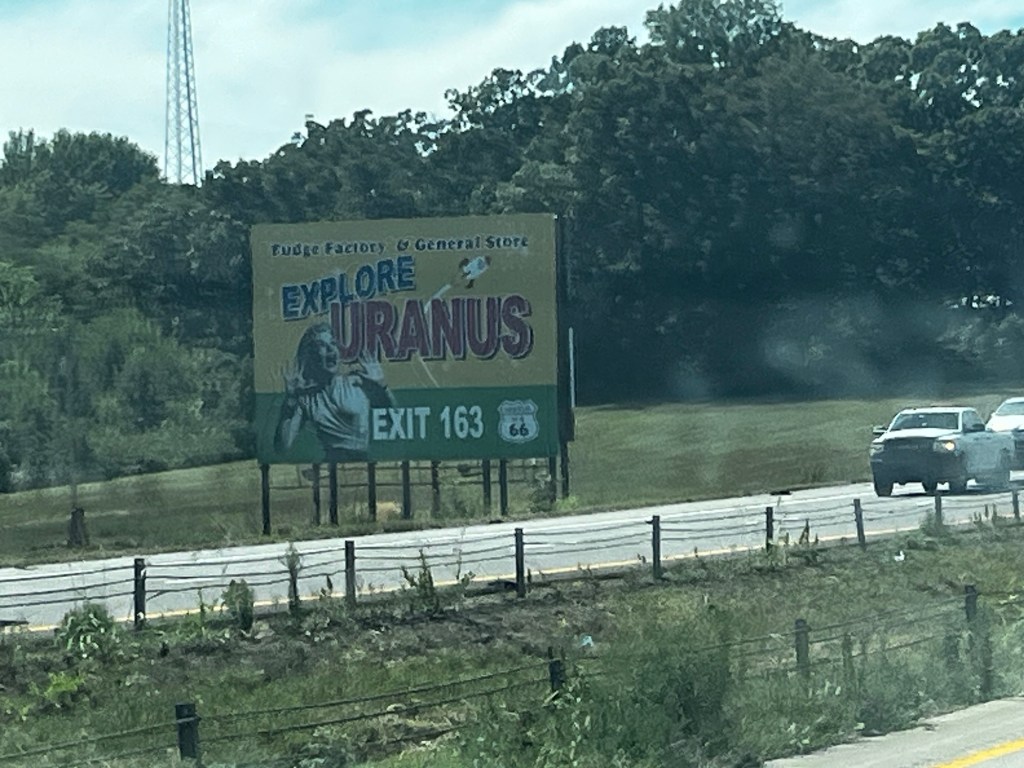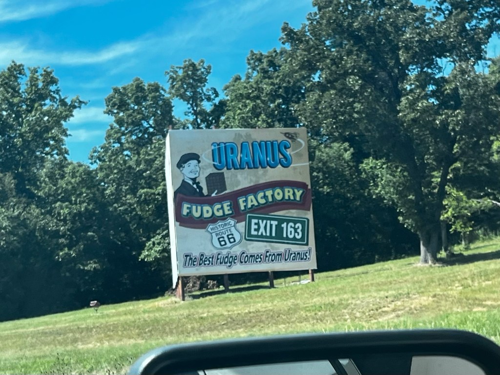 The route took us through St. Louis and along a stretch of Route 66. The signs for some of the kitschy attractions did not disappoint.