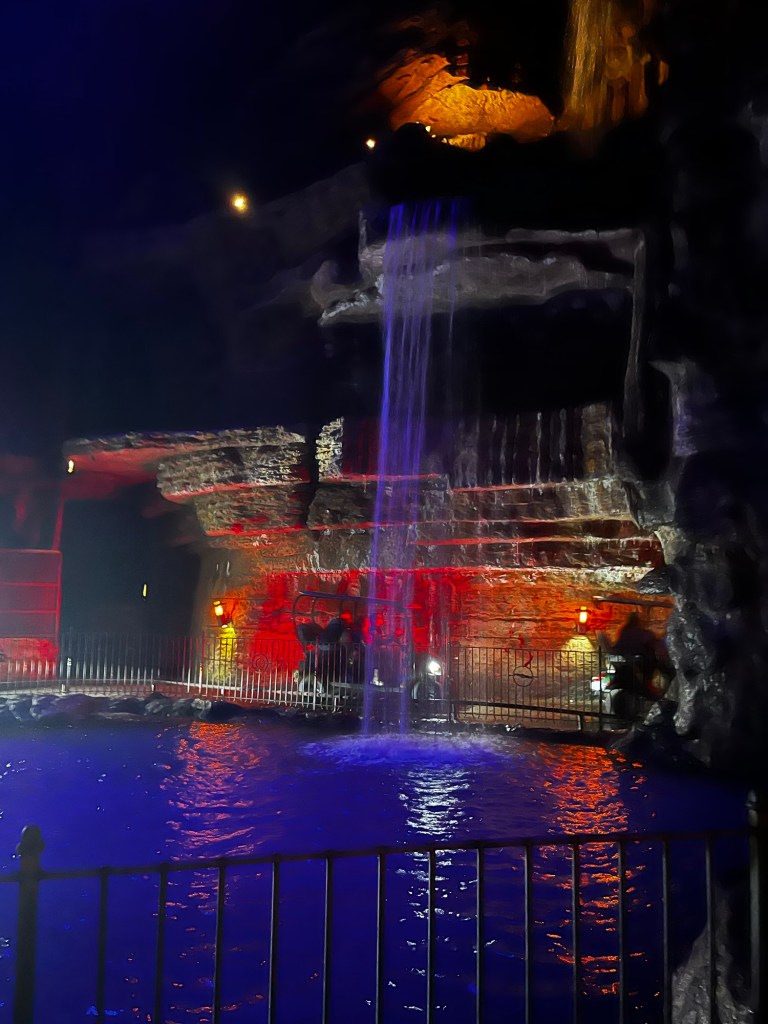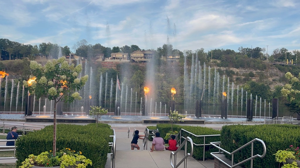For dinner we headed to downtown Branson and Full Throttle distillery. We’d heard good things about it. Our dinners were good- nothing really to rave about. After dinner we walked over to Branson Landing. I had heard there was an hourly water fountain display,designed by the same people who did the Bellagio in Vegas. It was incredibly…underwhelming.