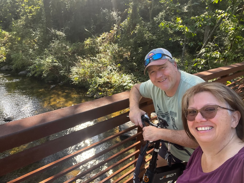 We had a great weekend here in Maryland. On Saturday, it was a beautiful day for a bike ride so we headed to the WB&A trail. We rode 22 miles round trip. This pic was taken just before we headed up a steep hill with lots of switch backs. Thank goodness for the e bikes!
