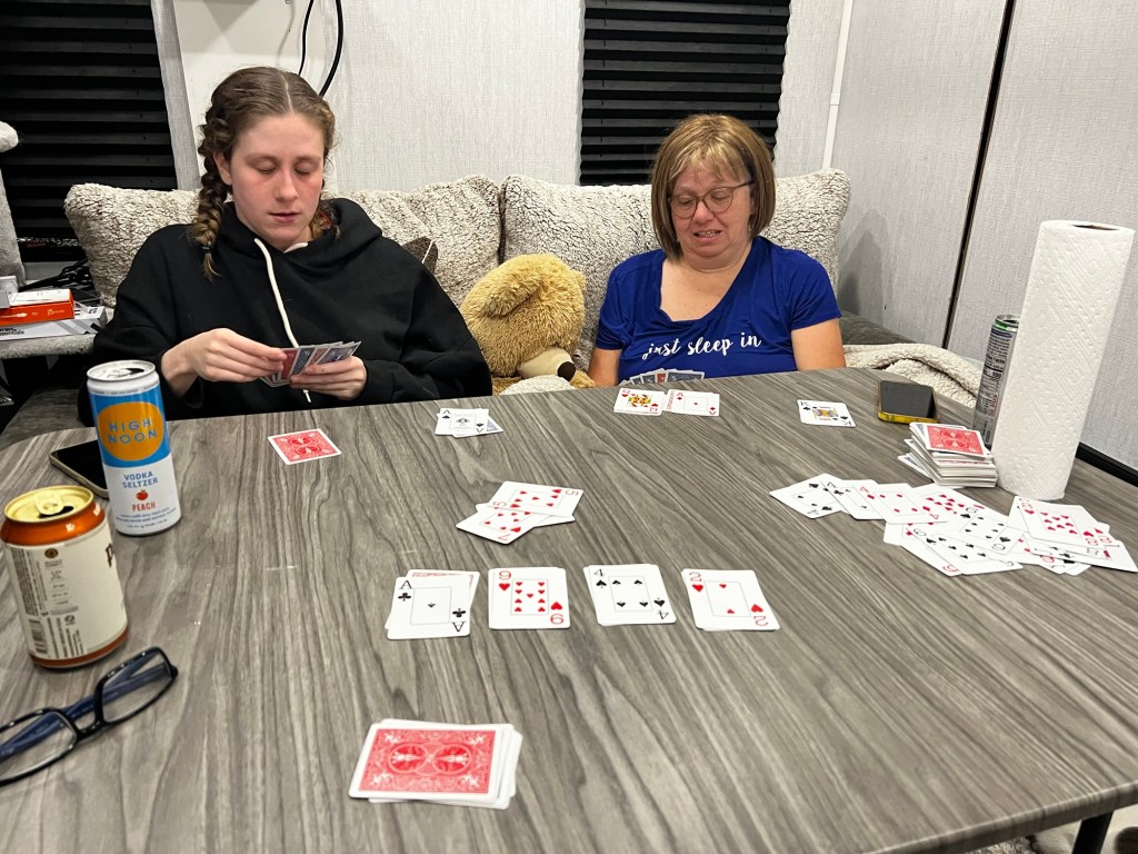 For March we headed to Bowling green Florida and stayed at Torrey Oaks. Our friends Donna and Jim snowbird at Torrey Trails, right next door. We had a blast with them and their Florida friends. We learned to play bean bag baseball. And we took in a Cirque du Soleil show in Orlando. Our last night we headed to Bradenton for the Freedom 500. It was REALLY hot but once the sun got a little lower in the sky it was a really fun time.